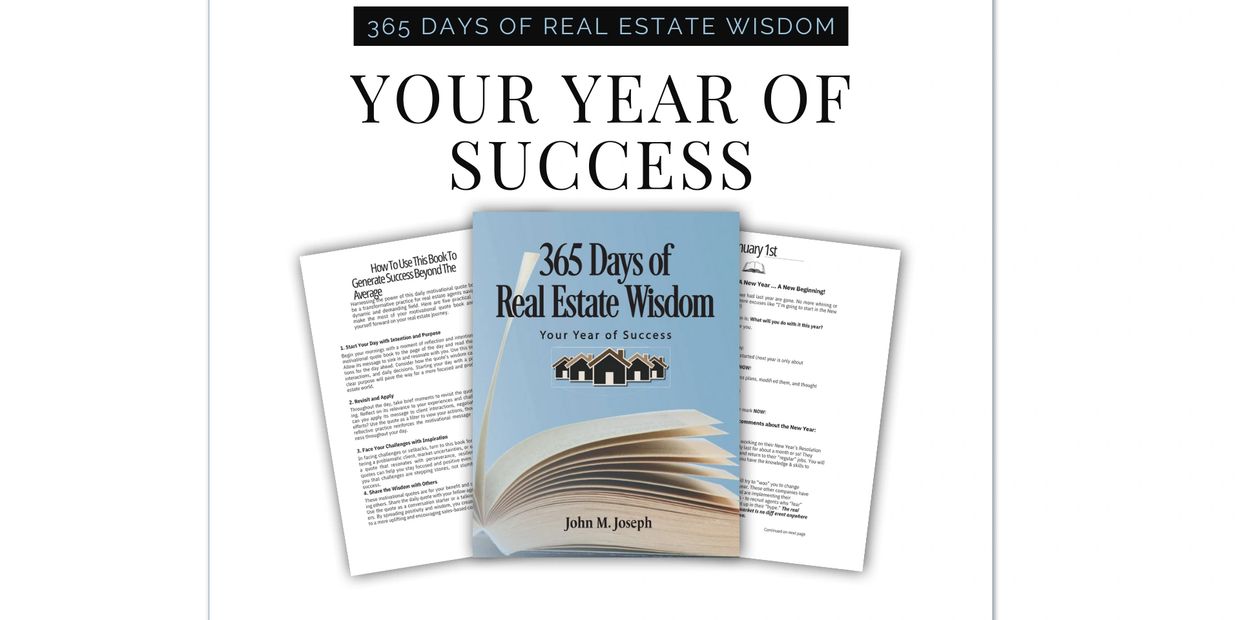 John Joseph is a dedicated coach and the author of "365 Days of Real Estate Wisdom: Your Year of Success." In the ever-evolving world of real estate, he believes success is more than just selling properties; it's about navigating a dynamic landscape, building lasting relationships, and embracing a growth mindset. His book is designed to be a daily source of motivation, encouragement, and guidance for those aspiring to become exceptional real estate agents.